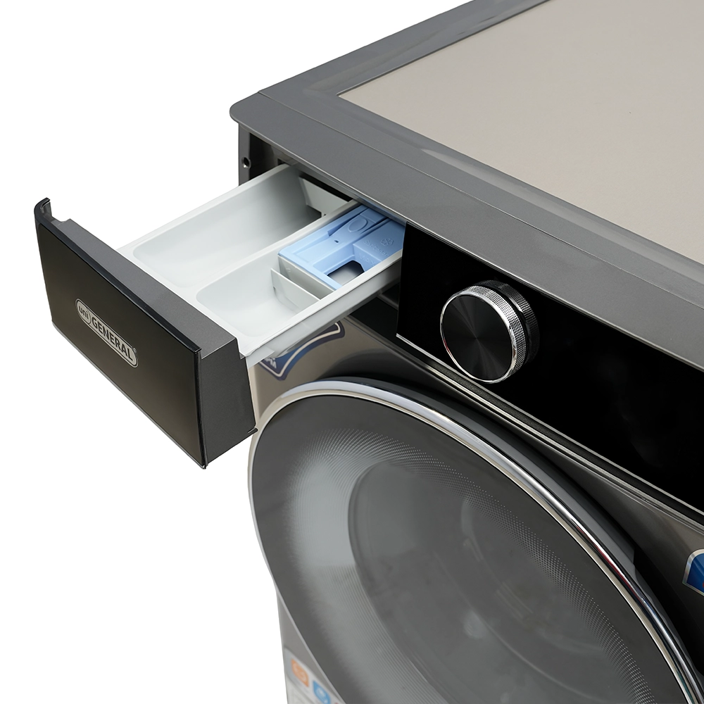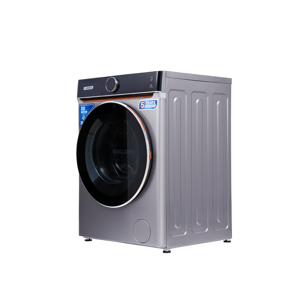 The UNI GENERAL UG-BWM10DD-S front-load washing machine features advanced 7 Motion DD Washing Technology and a sleek silver design. With 10kg capacity, it delivers efficient, quiet performance using its DD motor. Key features include an Intelligent Washing System, UV Light Sterilization, Warm Air Wash, and Baby Care Hot option for enhanced cleaning and hygiene. Spin speeds reach 1400 RPM, with variable temperature settings from Cold to 90°C. With a 5-star rating, IPX4 waterproof protection, and energy efficiency, it’s the perfect choice for modern households.