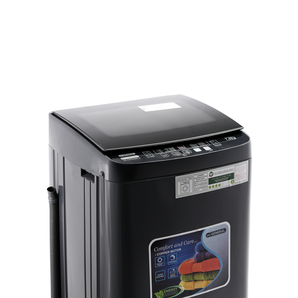 The UNI GENERAL UG-0701TLWM-G (Grey) top-load washing machine is designed for families who value everyday efficiency, durability, and modern convenience, earning strong user satisfaction for its reliable performance. With a 7kg capacity, it easily manages daily laundry requirements, while the copper motor delivers stable, efficient, and long-lasting operation.